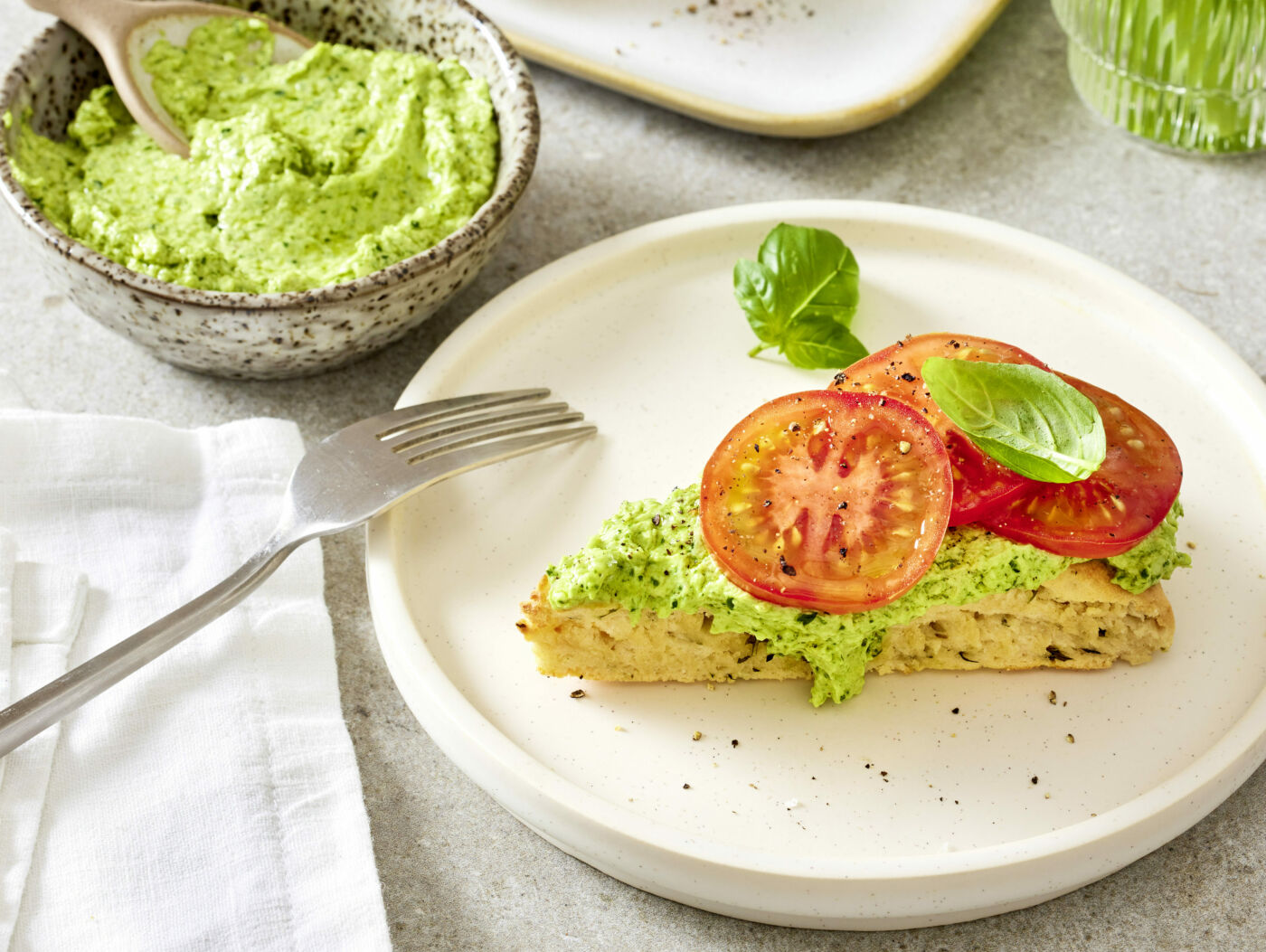 Schon zum Frühstück können wir bewusst und pflanzenbetont schlemmen. Unser herzhaftes Rezept vereint Basilikum, Käse und Nüsse zu einem köstlichen vegetarischen Topping auf selbstgebackenen Buttermilch-Scones.