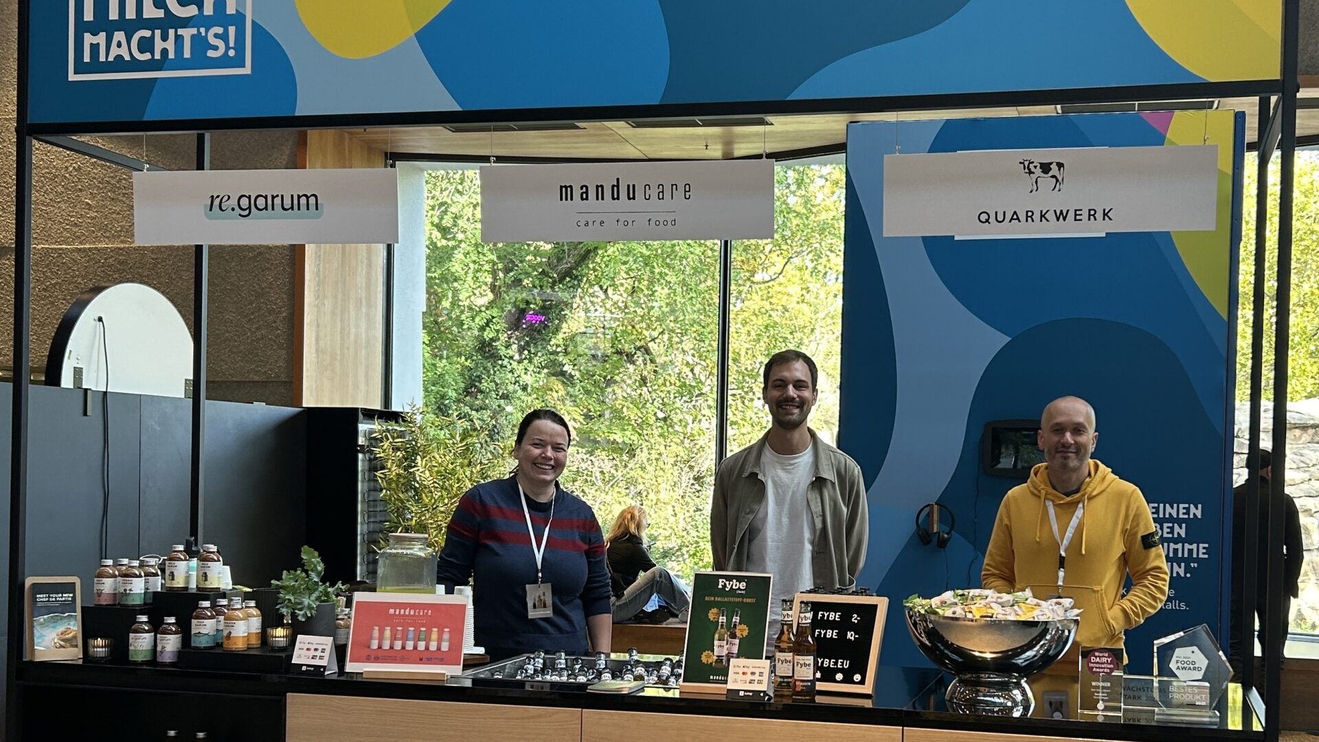Auch re.garum lockte viele Neugierige an den Stand, wo das Start-up unter anderem das Milch-Garum präsentierte. Das Geniale dieses milchbasierten Würzmittels: Hauptzutat ist Molke, ein Nebenprodukt der Käseherstellung. Das trägt dazu bei, Lebensmittelverschwendung zu reduzieren. Und es schmeckt einzigartig. Für das Milch-Garum wird die Molke fermentiert, wodurch sie einen einzigartigen Umami-Geschmack entfaltet.
