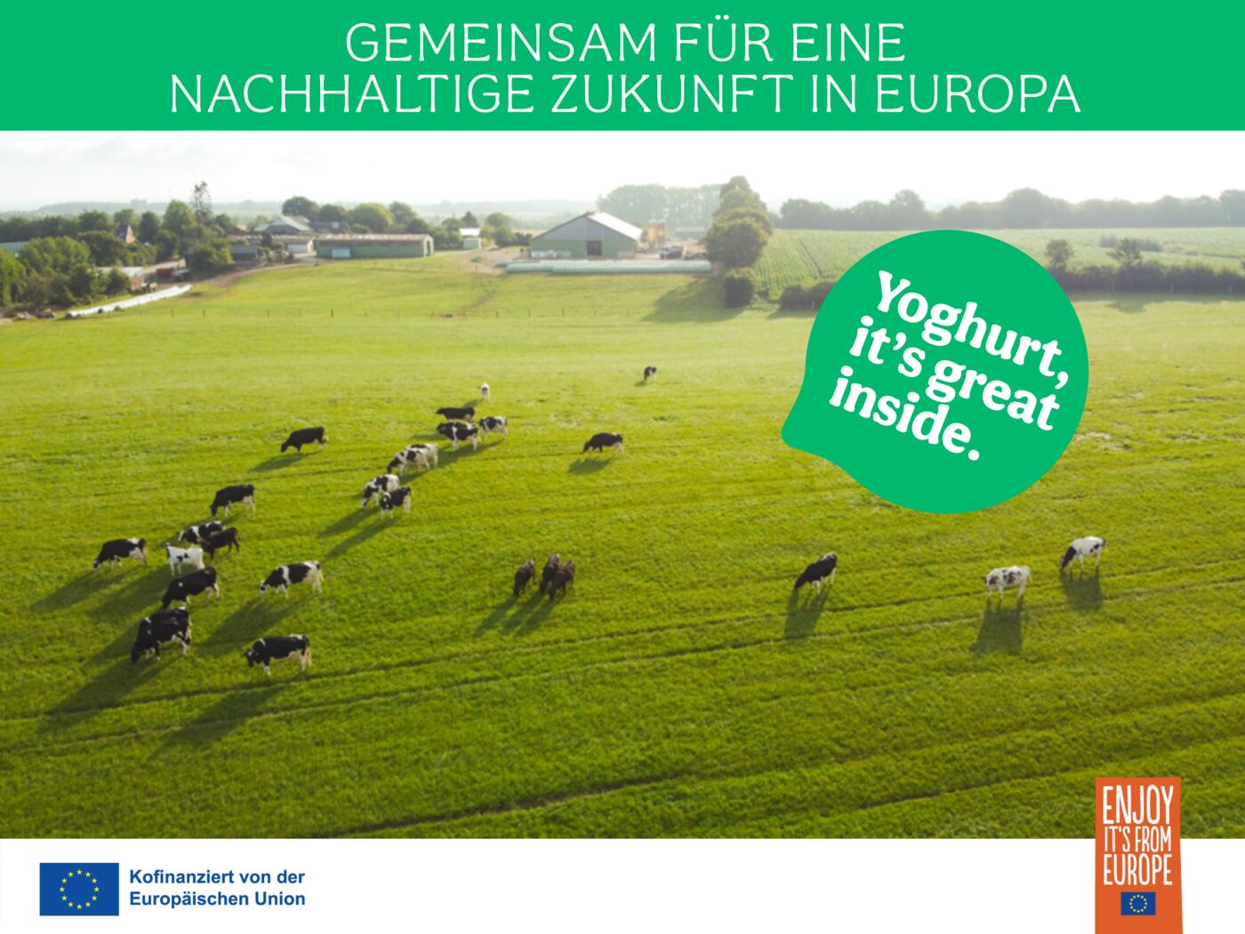 Immer mehr Landwirt:innen in Deutschland und aus ganz Europa setzen innovative Praktiken um, um ihren CO₂-Fußabdruck nachhaltig zu reduzieren. Von ressourcenschonender Landwirtschaft über tiergerechte Haltungsformen bis hin zu cleveren Futterstrategien – Milchhöfe in Europa arbeiten gemeinsam für eine klimaschonende Zukunft. So steckt in jedem Liter Milch und jedem Becher Joghurt auch das Engagement für Qualität, Verantwortung und Nachhaltigkeit.