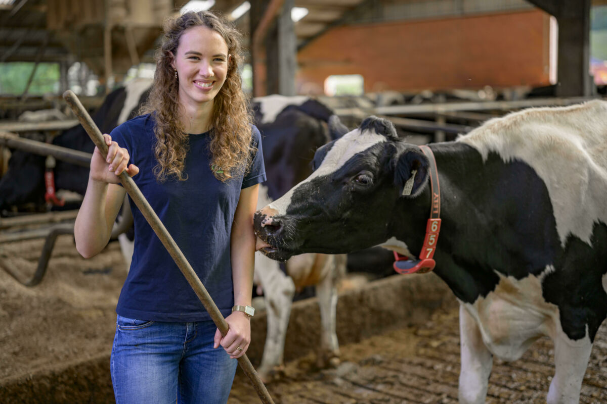 Und der Melkroboter hat noch einen weiteren Vorteil: Er liefert Daten! “Vorher haben wir Milchkontrollen durchgeführt und uns auf unsere Intuition verlassen”, erklärt Luisa. “Nun haben wir noch eine weitere Quelle, die uns Informationen über unsere Kühe liefert.” Steigt zum Beispiel Cookies Körpertemperatur, kann Luisa das gleich über ihr Handy nachvollziehen. So können sie sich noch zielgerichteter um die Gesundheit von Cookie und den Rest kümmern. Das Tolle: Nicht nur die Wiederkäuer profitieren von neuen Technologien, sondern auch Landwirt:innen wie Luisa, Florian und Martin, die wir in den letzten Wochen begleiten durften. Denn die Daten sind auch auf dem Handy abrufbar. Das gibt den Milchwirt:innen auch ein wenig mehr Freiraum im privaten Leben, wenn sie z. B. von unterwegs praktisch in den Stall gucken können. Sie selbst können ihre Arbeitszeiten etwas flexibler gestalten Eine Win-Win-Situation also für Kuh und Mensch.
