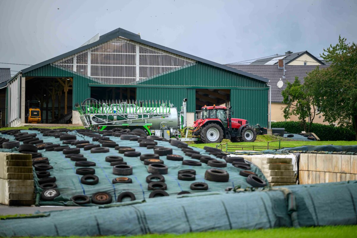 Am Ende unserer Datenaufzeichnung wird noch einmal ein neuer Grasschnitt für Franzi und ihre Kolleginnen aufgetischt! Dabei handelt es sich um den ersten und zweiten Schnitt aus dem Frühjahr, der jetzt als Silage den Tieren als Futter ausgegeben wird. In der Regel schneiden Martin und Eva vier bis fünf Mal im Jahr das Gras auf ihren Wiesen. Es ist die Hauptgrundlage für ihre Fütterung. Um das Gras haltbar zu machen und damit es den Kühen das ganze Jahr über zur Verfügung steht, wird es siliert. Dabei wird Grünfutter gehäckselt, in ein Silo gefüllt und so lange luftdicht abgedeckt, bis die Gärung zum Stillstand kommt.