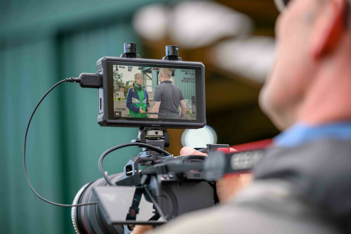 Wir sind mit dem Kamerateam vor Ort und drehen im Stall und auf der Wiese (das Ergebnis findet ihr hier). Herzstück eines jeden Hofs sind natürlich die Kühe - die übrigens sehr soziale und interessierte Tiere sind. Auch bei unserem Filmdreh auf Martins und Evas Hof kommen sie vorbei und schauen neugierig, was da so passiert. Mittendrin: Unsere Kuh Franzi. Die Kurve ihres Aktivitäts-Index zeigt einen Ausschlag an – zu der Zeit, als wir uns für den Filmdreh im Stall aufhielten. Was die Kühe von Martin und Eva ebenfalls nicht sind: scheu! Immer wieder zieht es sie zum Gang, wo sich das Drehteam für den nächsten 'Take' präpariert. Dort schnappen sie nach herunterhängenden Bommeln oder lecken Jacken von abgelenkten Kameramännern ab. Auch Stative waren vor den Vierbeinerinnen nicht sicher.