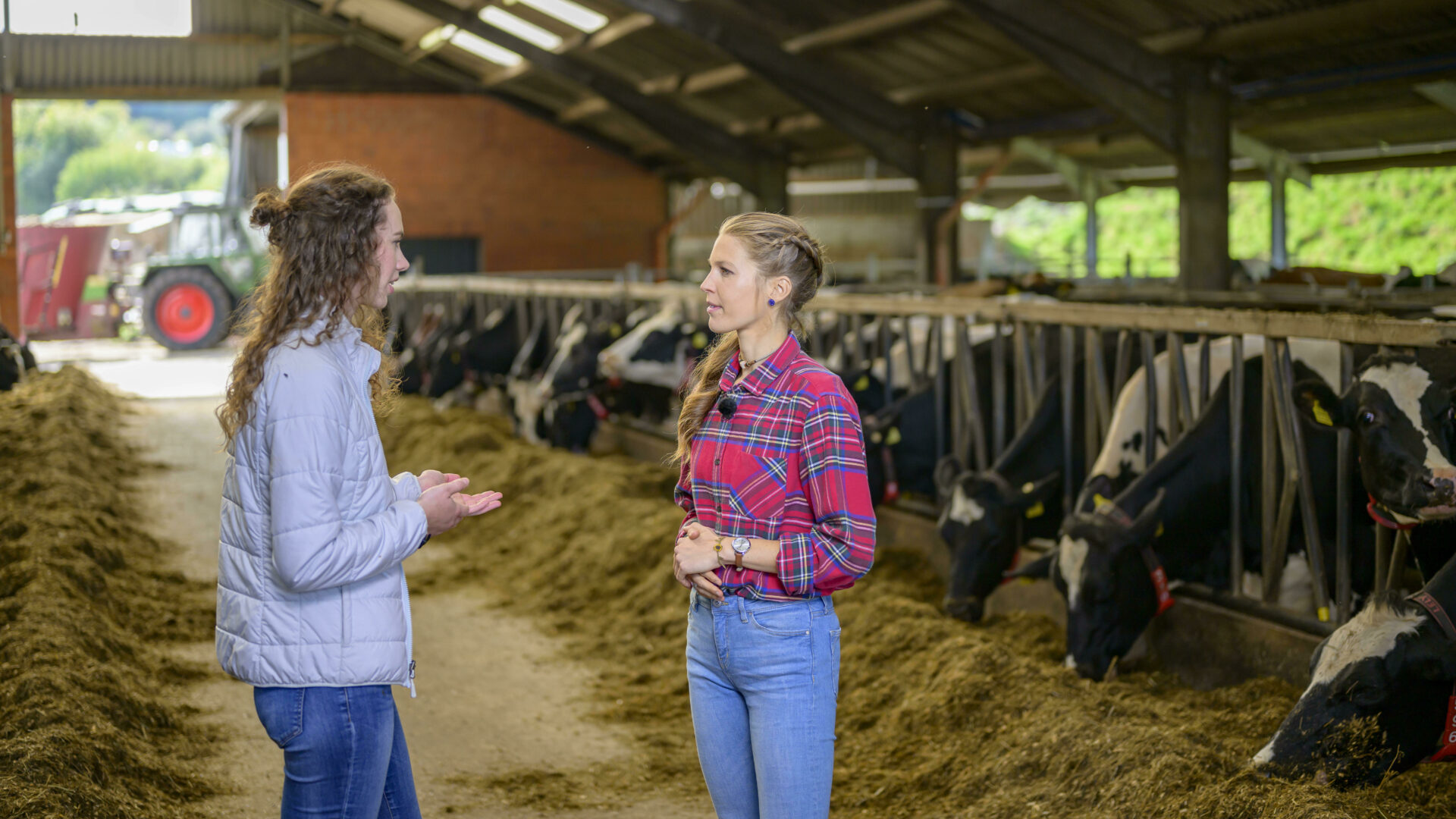 Heimische Futtermittel, Kreislaufwirtschaft und der Einsatz erneuerbarer Energien – Luisa und ihre Familie arbeiten kontinuierlich an einer klimaschonenderen Milchproduktion. Dabei helfen ihnen Daten und das Know-how von Nachhaltigkeits-Expert:innen, die sie im Rahmen des sogenannten Klimacheck-Programms unterstützen.