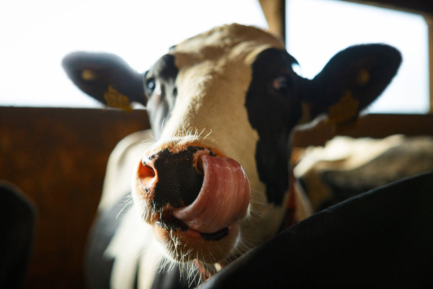 Tiere werden für den Menschen zu Nahrungsmittelkonkurrenten, wenn an sie Pflanzen verfüttert werden, die auch uns ernähren können. Bei Kühen stehen allerdings zum größten Teil Gräser, Ernte-Nebenprodukte und Koppelprodukte, also faserreiche Pflanzenbestandteile, auf dem Speiseplan. Kühe können aus für Menschen nicht essbarer Biomasse wie Gras oder Heu Eiweiß bilden. Dafür benötigen sie von Natur aus kein Nahrungseiweiß. Die Mikroben im Pansen, dem Vormagen der Kuh, verwandeln löslichen Stickstoff in hochwertiges Eiweiß. Die Basisproduktion von Milch und Rindfleisch ist somit völlig ohne Nahrungskonkurrenz möglich.