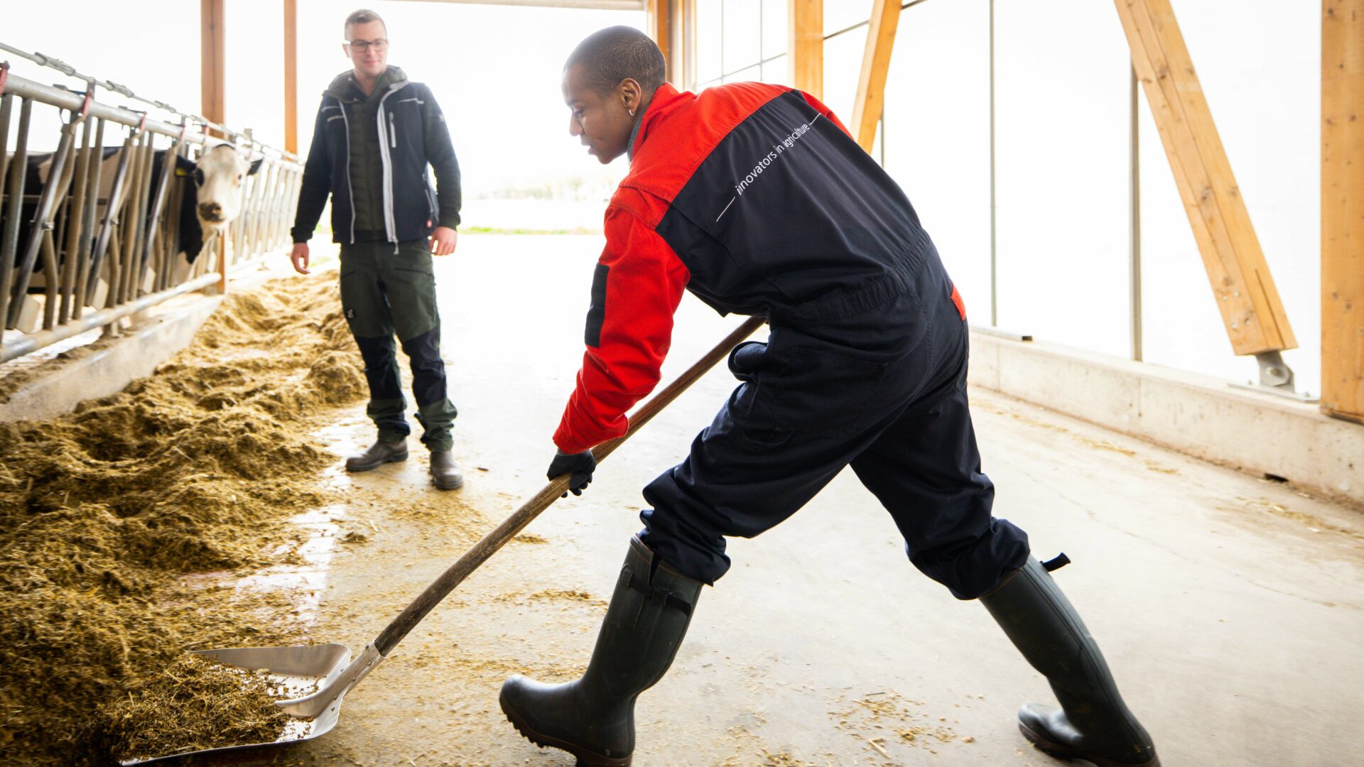 Die moderne Landwirtschaft und allen voran die junge Generation der Milchwirt:innen nehmen das Tierwohl und die Klimathematik sehr ernst. Daher etablieren immer mehr Höfe nachhaltige Prozesse und setzen auf den neuesten Stand der Technik. Eine eingespielte Zusammenarbeit von Tier und Mensch mithilfe digitaler Technologie ist hierbei eine wichtige Säule. Familie Kruse betreibt mit ihrem neu gebauten Außenklimastall, Melkroboter, Futterschieber, Biogasanlage und Grünlandflächen genau solch eine moderne Kreislaufwirtschaft – und zwar bis zum letzten verdauten Grashalm. “Gülle, Mist und Futterreste verwerten wir in der Biogasanlage zu Strom und Wärme. Damit versorgen wir zum Beispiel die Grundschule, Feuerwehr und Gastronomie hier im Ort”, erklärt Jungbauer Hinrich. Damit das in der Gesellschaft gesehen wird, öffnen Landwirt:innen wie Hinrich Kruse und seine Frau Helene ihre Hoftüren für Besucher:innen wie Tarik.