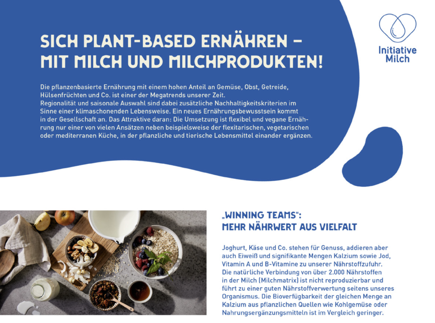 Informationsblatt der Initiative Milch zu einer pflanznebtonten Ernährung mit Milch