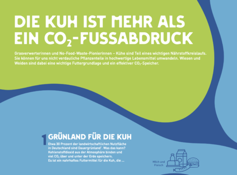 Methan, das die Kühe freisetzen, wird in wenigen Jahren abgebaut und ist über die Futterpflanzen der Kühe in einem Kreislauf. Hier geht es zur Infografik.