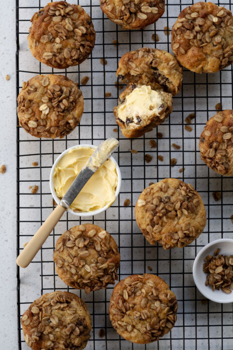Schon zum Frühstück können wir bewusst und pflanzenbetont schlemmen. Unser herzhaftes Rezept vereint Basilikum, Käse und Nüsse zu einem köstlichen vegetarischen Topping auf selbstgebackenen Buttermilch-Scones.